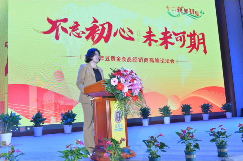 會議伊始,董事長康德云女士圍繞《筑基強(qiáng)根·拓局謀遠(yuǎn)》展開主題演講,她在會上堅定表示,豆黃金的“本”是質(zhì)量,0添加天然綠色的食品。豆黃金目標(biāo)清晰,就是利用好“0添加鮮腐竹”這一塊金字招牌,把品牌做大做強(qiáng)。疫情過后,國門一開,萬邦來商。消費信心在回升,中國經(jīng)濟(jì)將全面復(fù)蘇,養(yǎng)生、綠色餐飲的前景廣闊。過去的一年,我們實施了人才戰(zhàn)略體系,廣納人才,煥新團(tuán)隊,為提振市場信心、擴(kuò)大品牌影響力、拓展?fàn)I銷思路等戰(zhàn)略方針,同時,感恩這么十二載全國各地經(jīng)銷商家人們的支持,對大家的到來由衷的表示感謝,實現(xiàn)“不忘初心”與“未來可期”的結(jié)合,更好地“面向未來”。